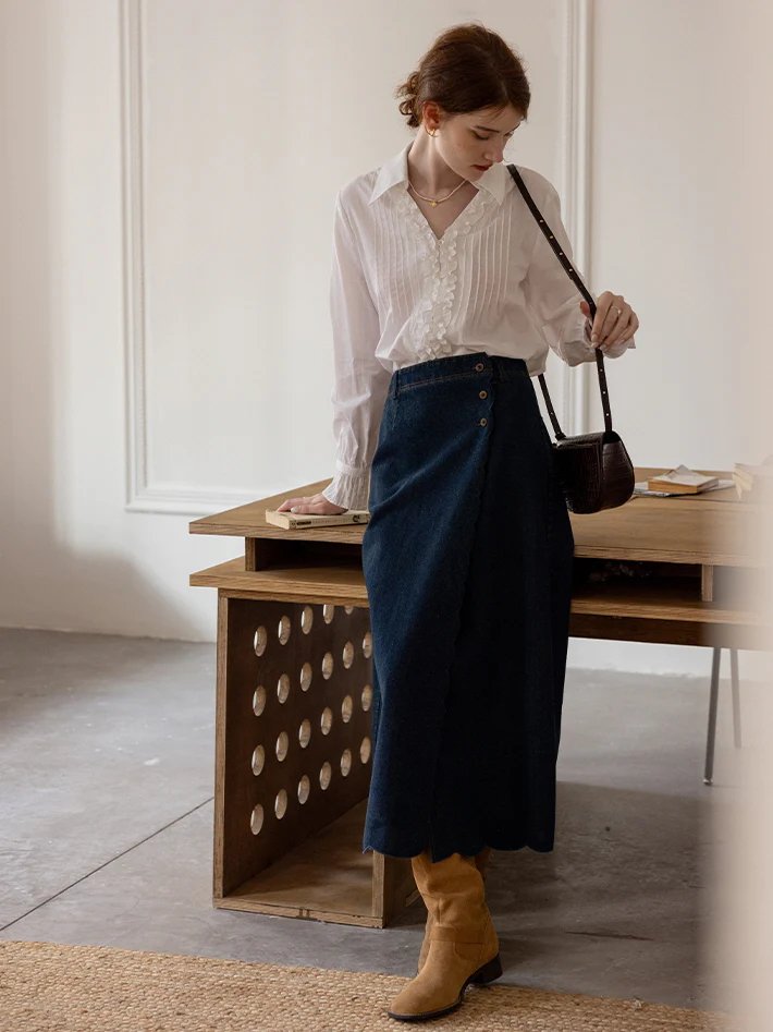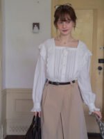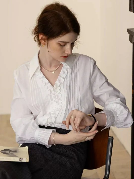 France Style – Vintage Charm Ruffled Cotton Blouse